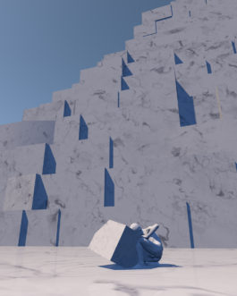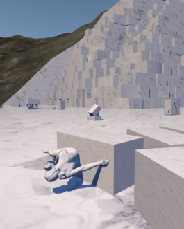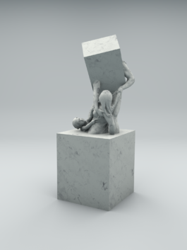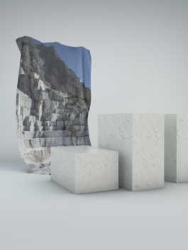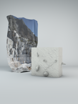 Wenn der Mensch wirklich etwas will, dann kann er Berge versetzen. Und versetzt er wirklich ganze Berge, dann eigentlich nur um sich selbst zu verwirklichen. Beim Mamor ist es so, dass er peu à peu in quadratischen Blöcken aus dem Berg herausgeschnitten wird. Solche Berge stehen/ standen z.B. in Carrara, Italien. Dort kostet so ein ausgeschnittener Block dann durchschnittlich 50.000 €. Es ist der Rohstoff für die Hochkultur, woraus eigentlich seit menschen gedenken – zumindest seit der Antike – unsere götterähnlichen Vorbilder geschnitzt sind. Sie sollen uns zeigen, was richtig, was falsch, was schön und was anzustreben ist; In Mythen, Menschenbildern und Symbolen zeigen sie uns unsere Normative auf. [Seit der Antike, bis in die 1990er Jahre sind ca. 500.000 Tonnen Marmor in Carrara abgebaut worden. Seit den 1990er Jahren bis heute sind es etwa 30.000.000 Tonnen. Das sind etwa 5.000.000 Tonnen im Jahr. Davon werden 50.000 Tonnen für die Bildhauerei verwendet, was neben der enormen Menge inzwischen nur noch einen Bruchteil ausmacht. Der Rest wird hauptsächlich für architektonische Zwecke, Papierproduktion und pharmazeutische Zwecke verbraucht und wird an dieser Stelle ausgeklammert.] arte.tv, "Die Marmorbrüche von Carrara"